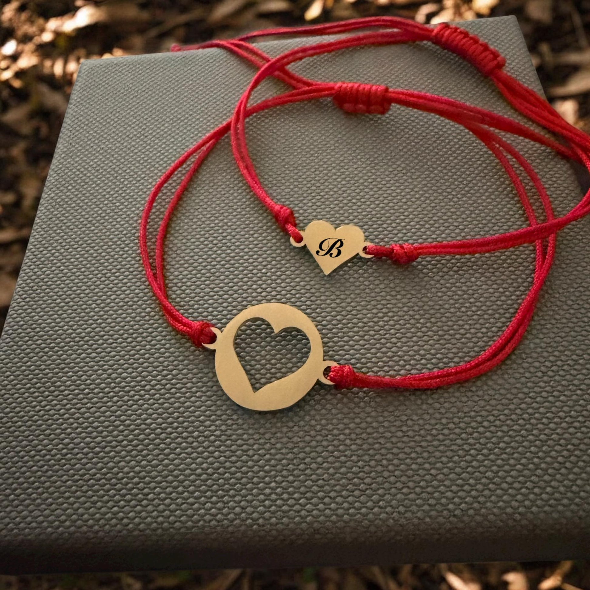 Комплект от две гривни с конец – дамска и детска с гравирано сърце с буква по избор